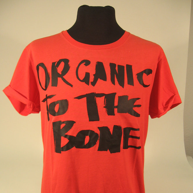 Casual short sleeve shirt for men with the imprint "ORGANIC TO THE BONE".
